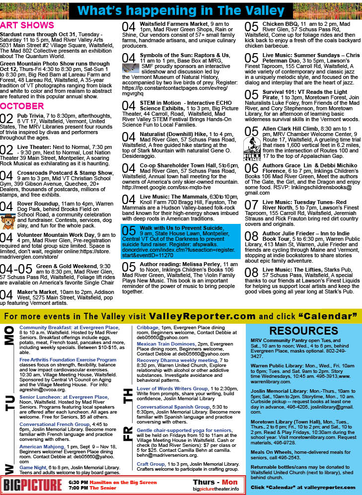 Community Calendar Welcome the the Community Calendar Download this week's Calendar from the paper (LINK) or find events below.
